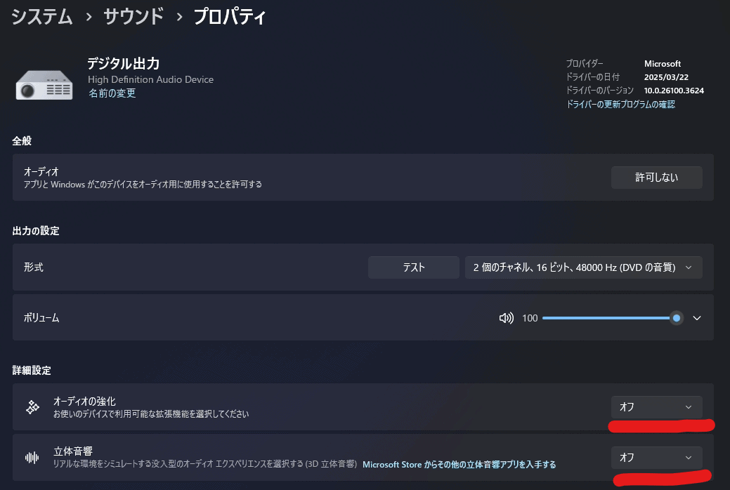 3. オーディオの強化と立体音響をオフにします