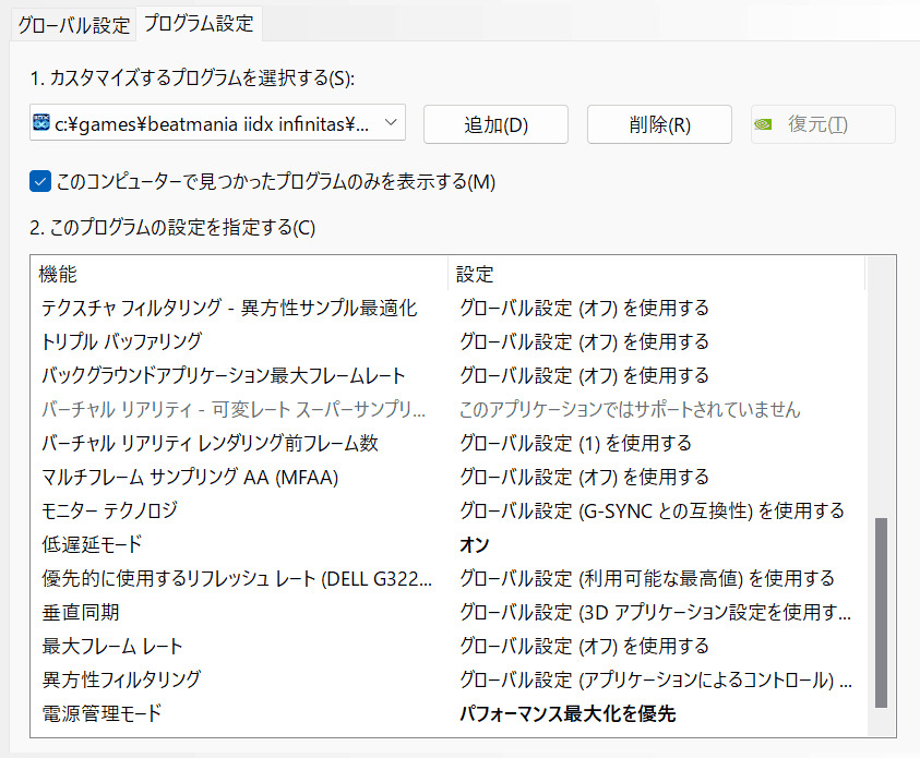 1. NVIDIAコントロールパネル→3D設定の管理→プログラム設定→INFINITASを選択